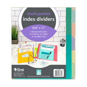 C-Line 5-Tab Index Dividers with Multi-Pockets, Durable, Bright Color Assortment (CLI 07650)