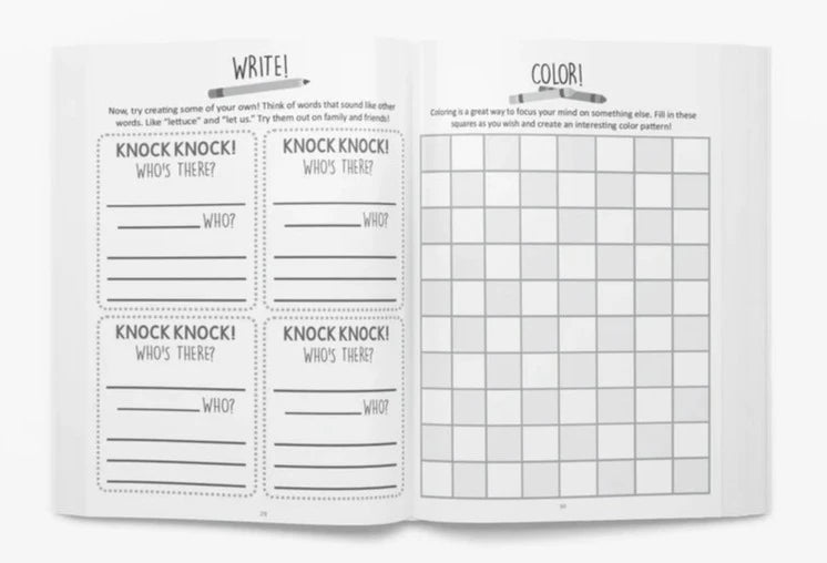 Developing their own comic strip, writing a story, making their own knock-knock jokes, or “Would You Rather” questions.