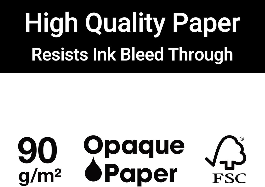 - Extra-opaque heavyweight lined paper resists ink bleed