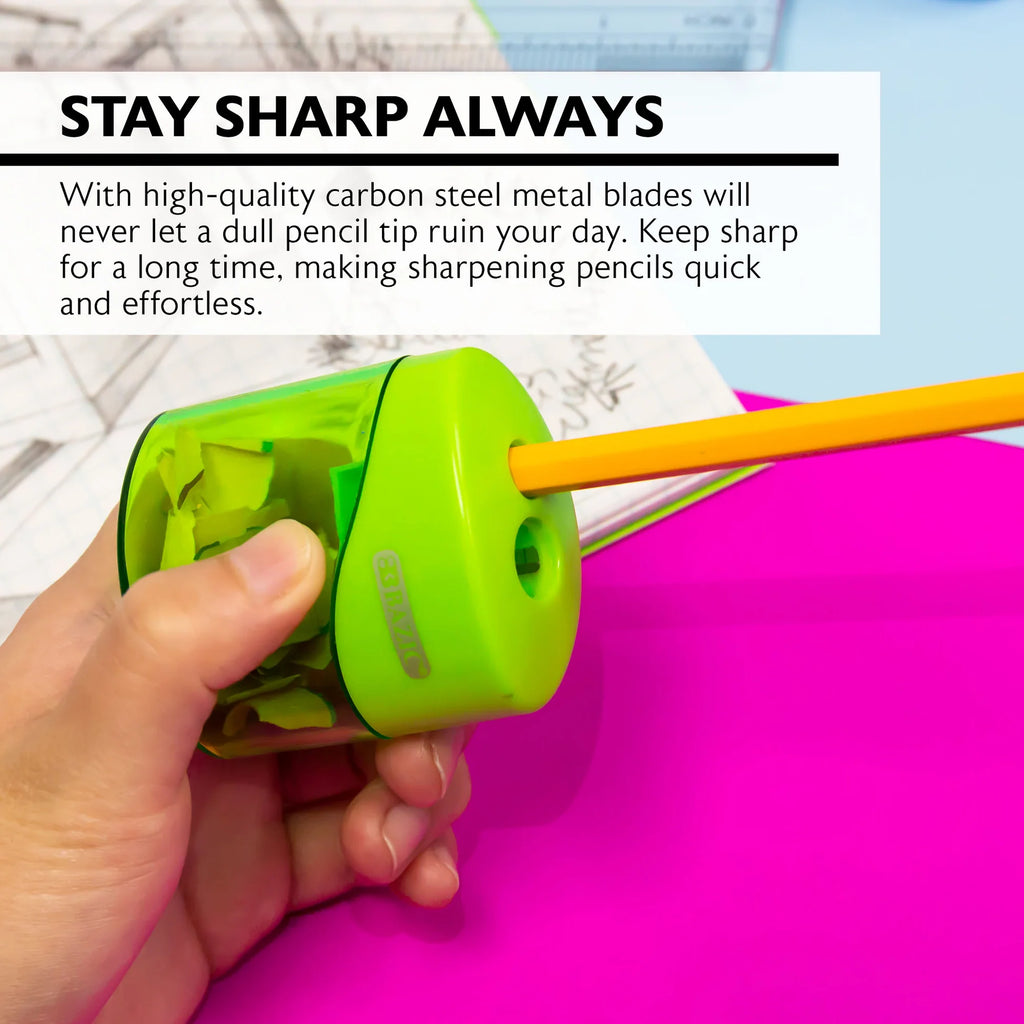The built-in square receptacle collects shavings for a clean workspace, while the assorted colors add a fun, vibrant touch to any desk or classroom. Durable and easy to use, it’s a practical tool for home, school, or office use.