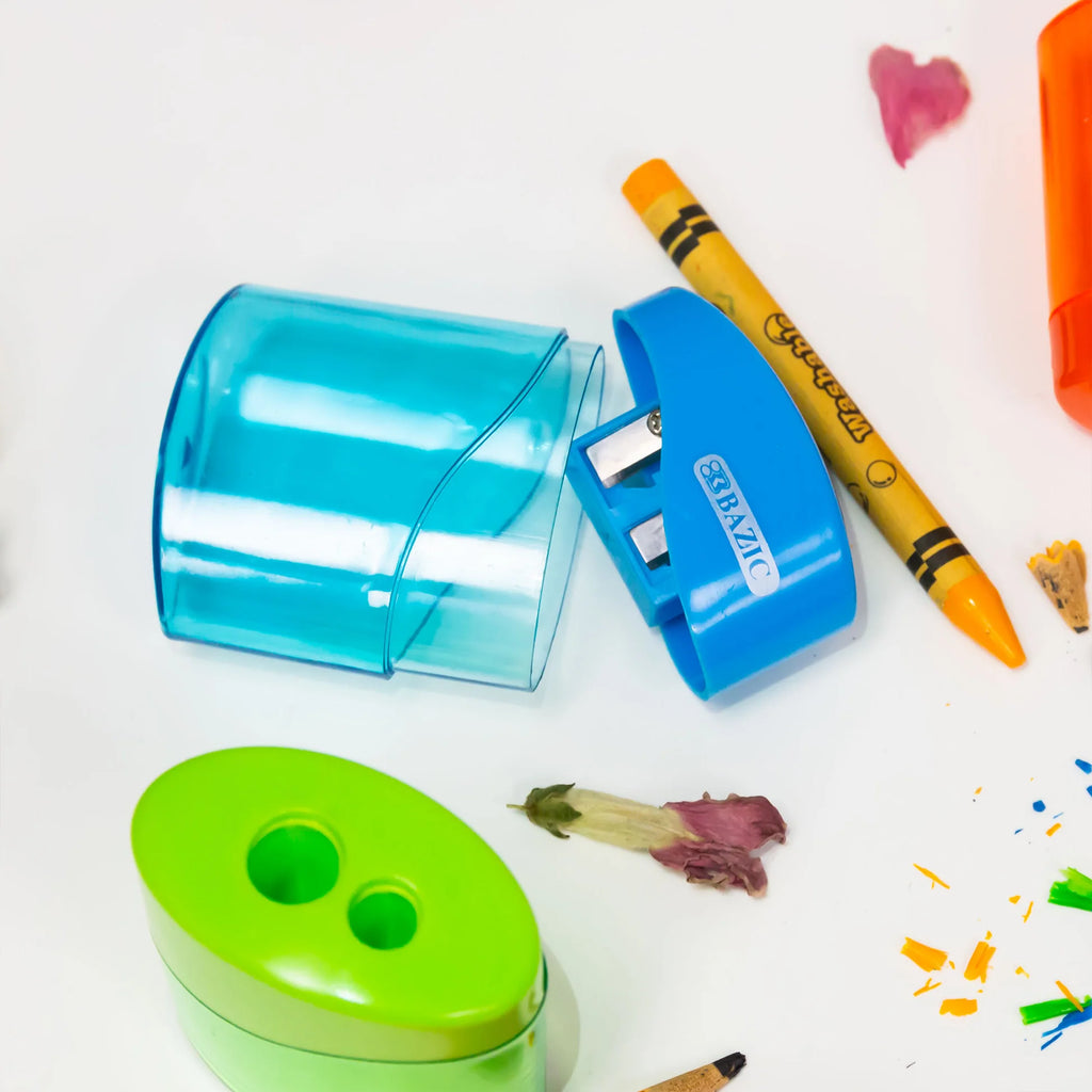 Keep pencils ready for writing, drawing, or schoolwork with the BAZIC Sophie Dual Hole Sharpener. This compact sharpener features dual-size holes to accommodate both standard and jumbo pencils, making it versatile for students, artists, and professionals.