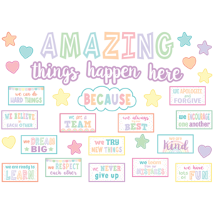Teacher Created Pastel Pop Amazing Things Happen Here Bulletin Board, 42 Pieces (TCR 8413)