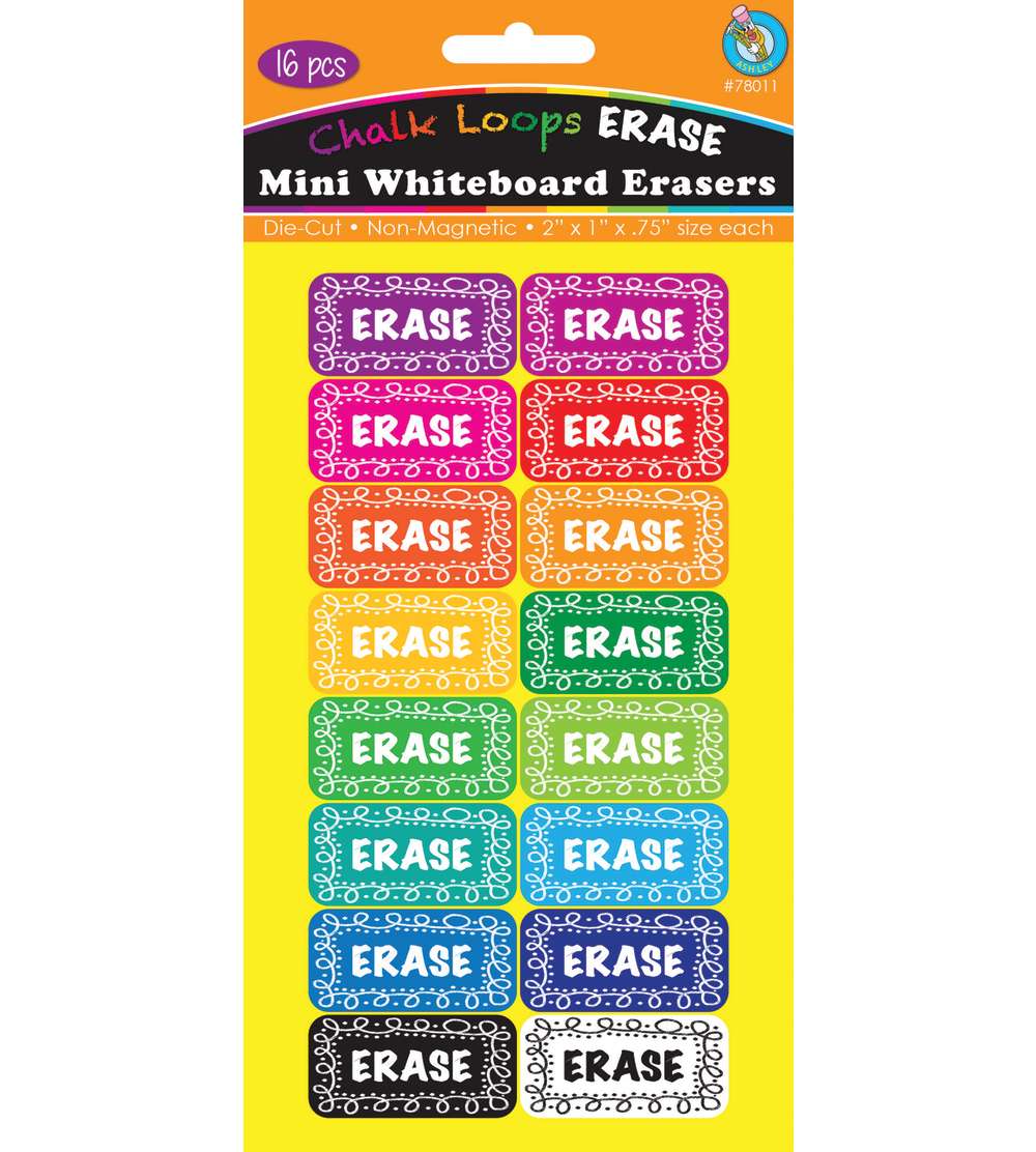 Ashley Chalk Loops Erase Mini Whiteboard Erasers, 16 Pack (ASH78011)
