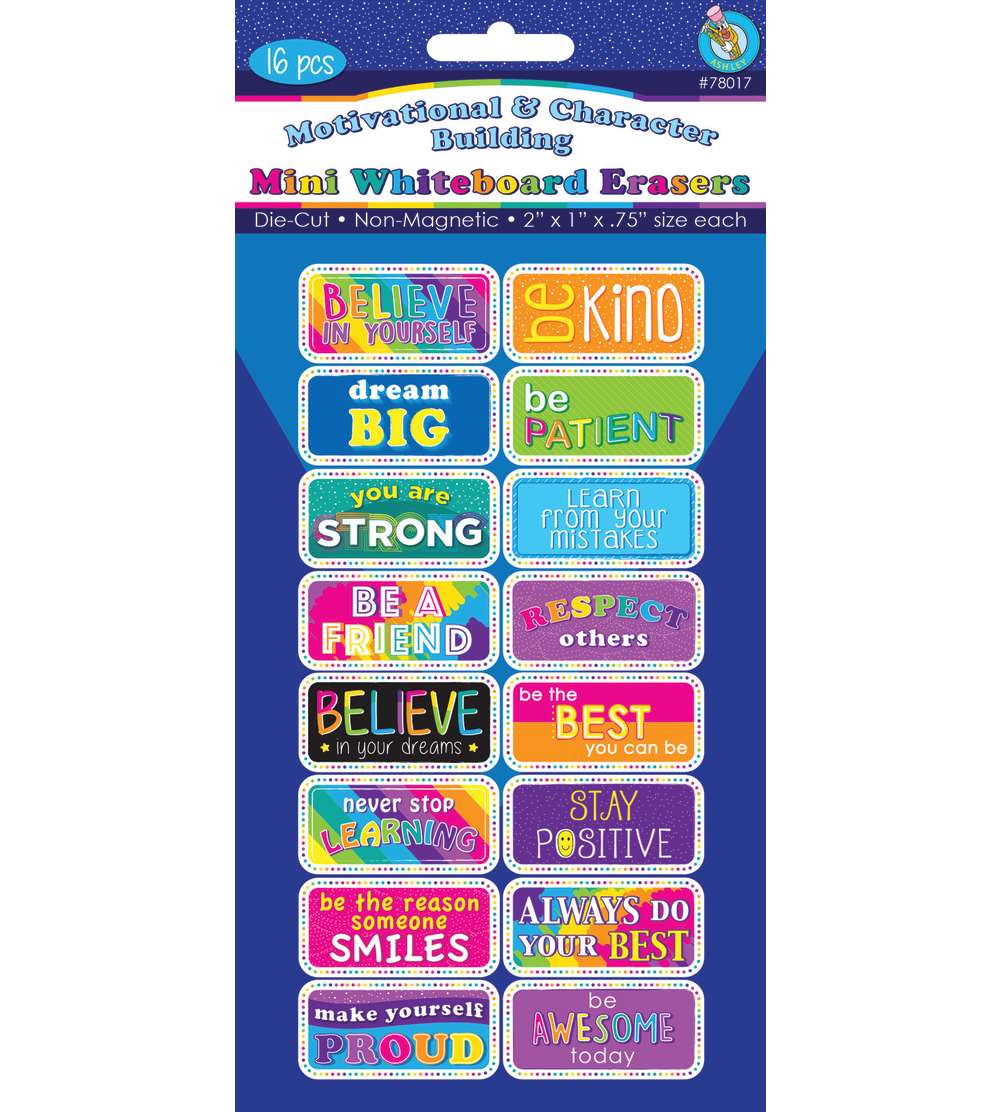 Ashley Motivational and Character Building Mini Whiteboard Erasers, 16 Pack (ASH78017)