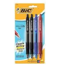 BIC Gel-ocity Gel pens, 4 Pack, 2 Black, 1 Blue, 1 Red 0.7 mm Med Ink