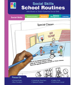 The Social Skills Mini-Books for School Routines offers targeted social narratives that provide students with special needs in grades PK-2 the tools and strategies they need to manage various school routines. This 64-page resource features reproducible mini-books that students can independently assemble, color, read, and personalize. This book addresses essential topics that include: On the Bus, Weather Delays, Substitute Teacher, Field Trip, Lockdown, and more.