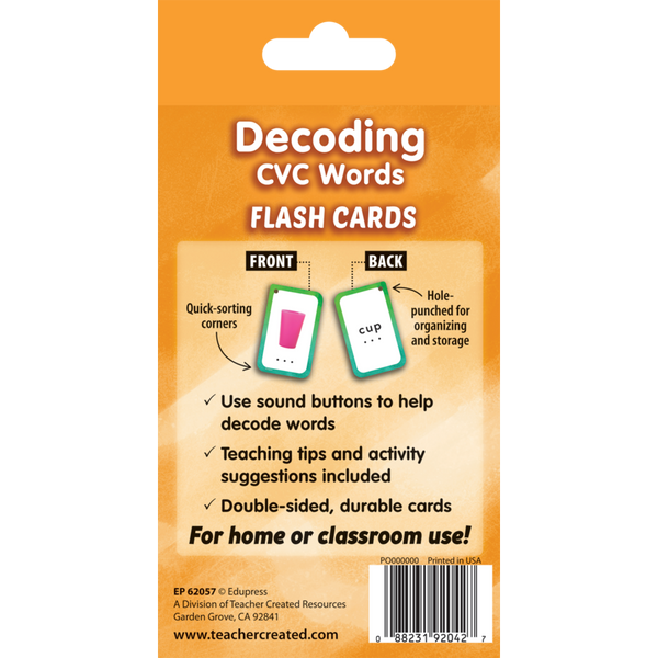 Teacher Created Decoding CVC Words Flash Cards, 3⅛" x 5⅛", 56 Cards (EP 62057)