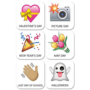 This handy set includes 35 calendar days with charming emoji-style icons representing major holidays and special school or classroom events: