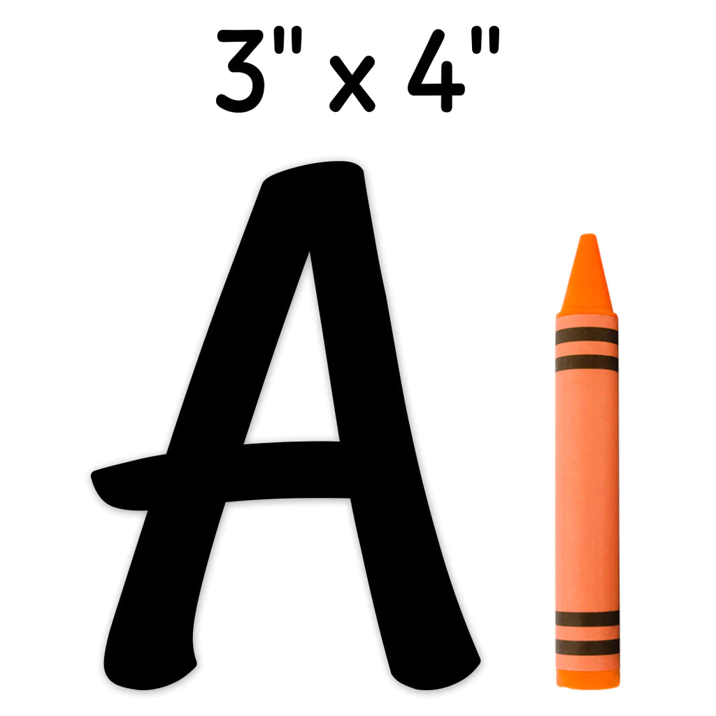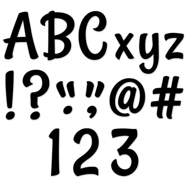 A fun, fresh twist on solid black letters! These Stylish Black 4" Designer Letters feature a playful, hand-lettered feel. This package contains 235 pieces, including upper- and lowercase letters, punctuation marks, and symbols. The casual design of these punch-out letters makes them versatile for use on any bulletin board or display in a school, office, college dorm, senior living residence, church, or daycare center.