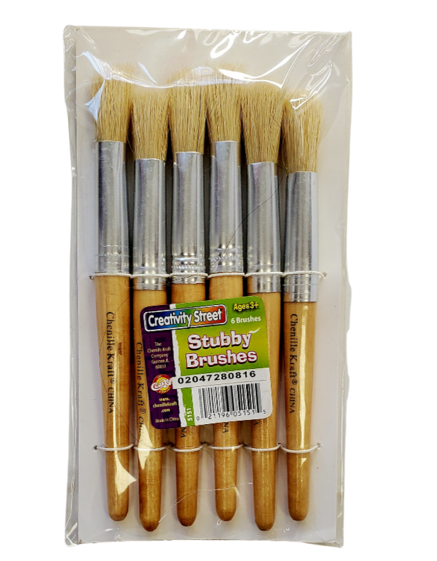 Creativity Street Beginner Round Stubby Brushes, Wooden Handles (PAC 05151)