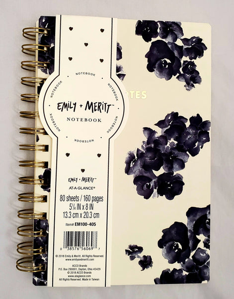 Emily + Meritt Notebook, Black Roses, 5.5" x 8.5" 80 Sheets Spiral (EM100-405)