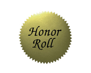 Honor Roll Gold Certificate Seals are gold foil certificate seals pre-printed with Honor Roll. Add an extra touch of class to every award ceremony. Self-adhesive stickers with serrated edges are also great for recognizing a job well done, awards, prizes, and bulletin board displays.