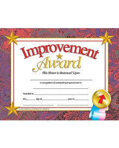 Certificate reads: Improvement Award This Honor is Bestowed Upon _____ in recognition of outstanding improvement in _____ Awarded at _____ this _____ day of _____ year of _____.
