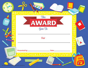 Hayes School Tools Award Certificate, Pack of 30, 8.5" x 11" (VA901)