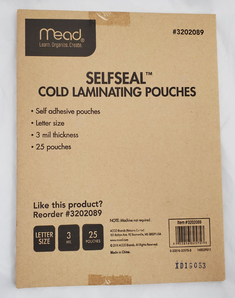 Mead Self-Seal Cold Laminating Pouches, 25 Pack (3202089)