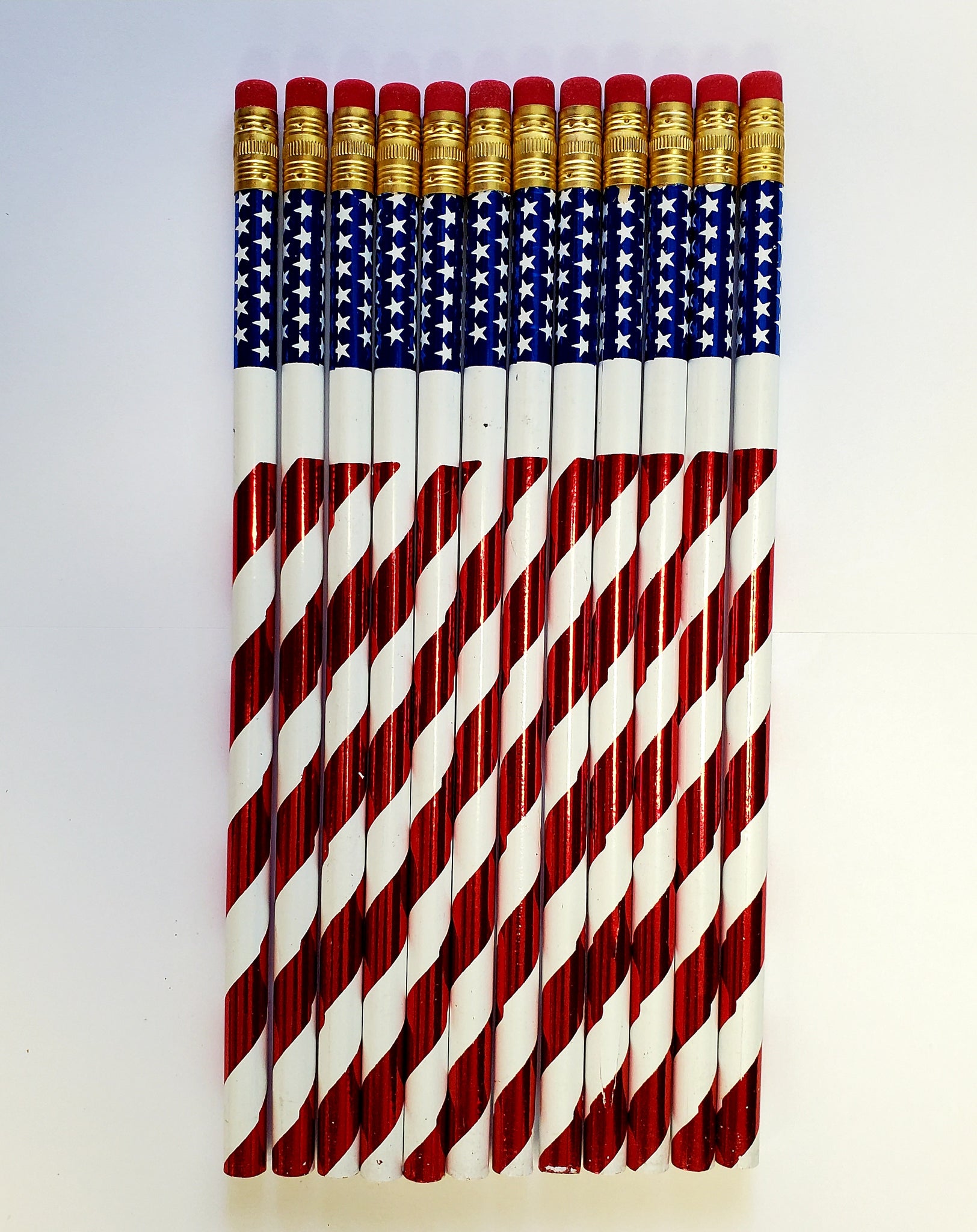 Patriotic celebrations with these Moon Products themed pencils, featuring durable, round barrels and No. 2 lead. Stars & Stripe pencils are great for handing out alongside candy or for celebrations in schools.