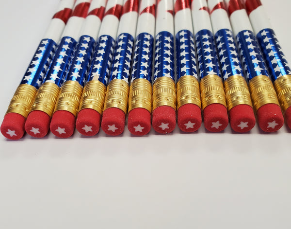 - Each pencil has stars on the top and the red stripe going around the pencil. There is even a white star in the middle of the eraser.