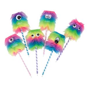 - This extraordinary pen features a multi-color mane of feathery fur and one or two large wiggly eyes.