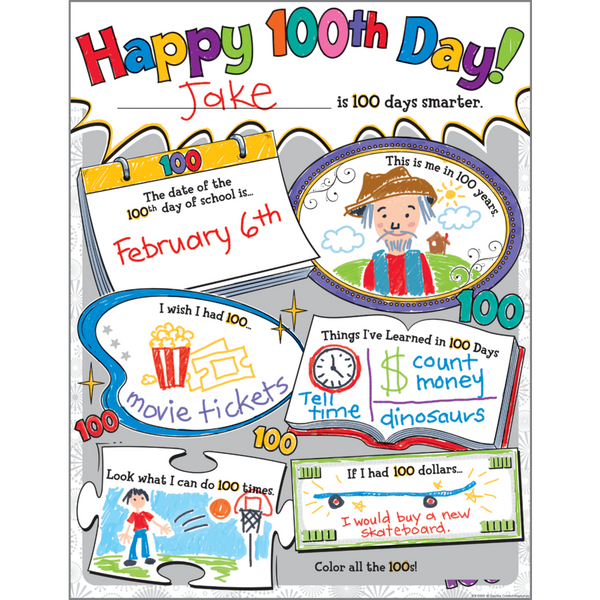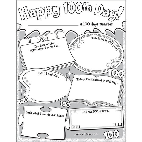 Celebrate the 100th day of school by giving students a chance to show what they’ve learned. The large 17" by 22" sheets provide plenty of space for words and pictures. 32 sheets per pack.
