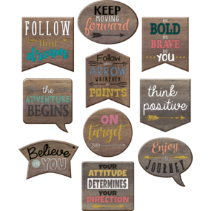 Use these decorative Positive Sayings Accents to dress up classroom walls and doors, label bins and desks, or accent bulletin boards. 10 designs; 30 accents per pack. Dimensions: pieces are about 6"