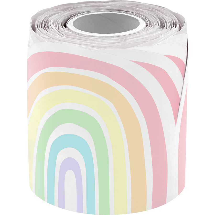 Teacher Created Pastel Pop Rainbows Rolled Border Trim, 50 feet (TCR 9160)