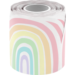 Use this Pastel Pop Rainbows Die-Cut Rolled Border Trim to liven up your classroom! Create fresh looks for bulletin boards, windows, walls, and class projects. Mix and match with coordinating products (stickers, notepads, awards, etc.) for a classroom theme. 50 foot continuous roll. (3" x 50')