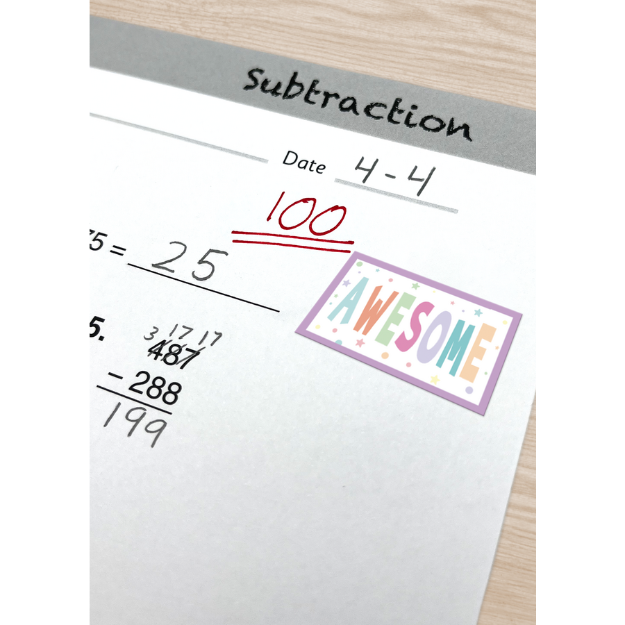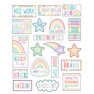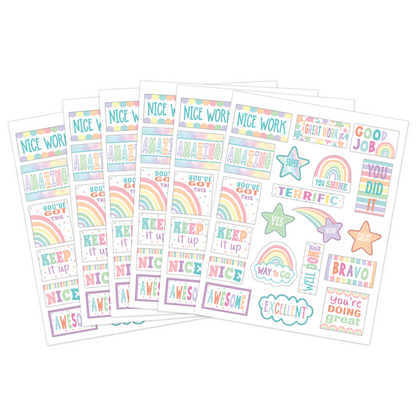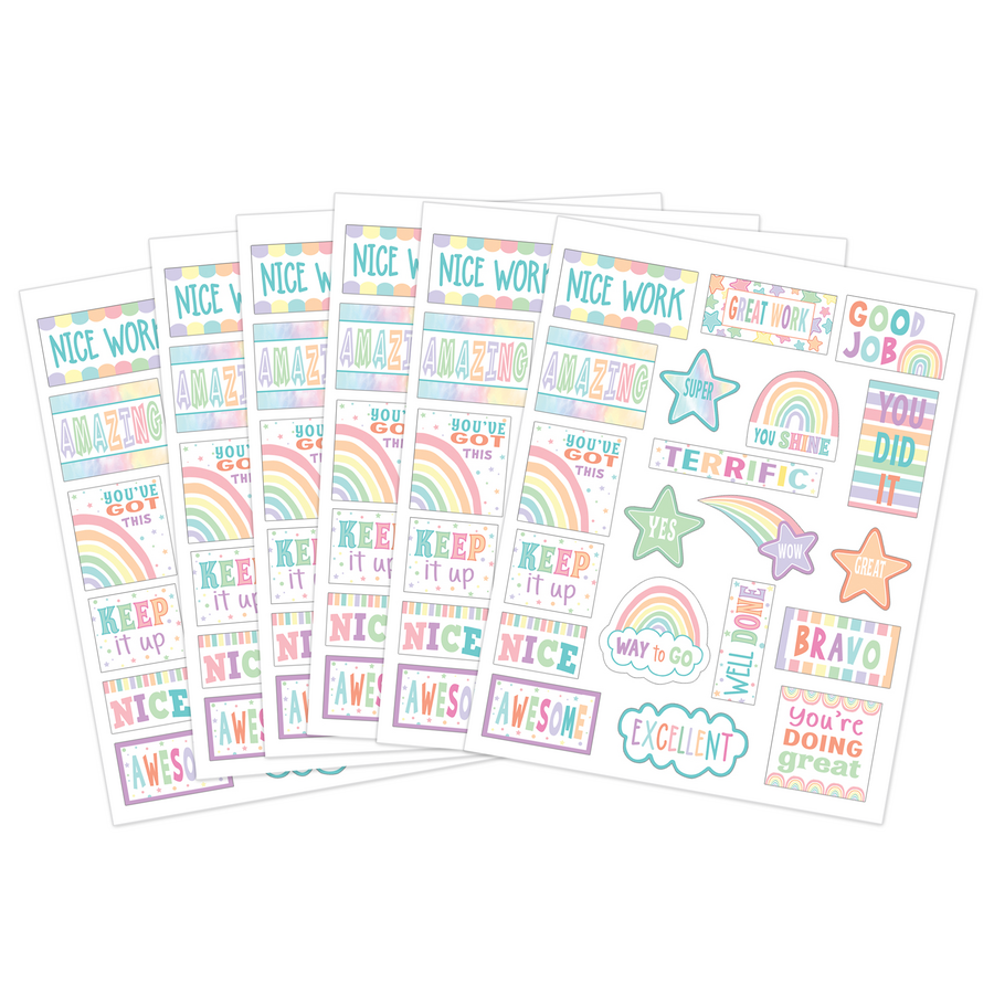 These cute, colorful stickers featuring inspirational messages help spotlight good behavior, boost motivation, and make good habits stick! Great on homework, incentive charts, and more. These stickers are nontoxic, acid-free and lignin-free. Pack includes 120 stickers, with 20 designs each measuring about 1¾" x ½''.