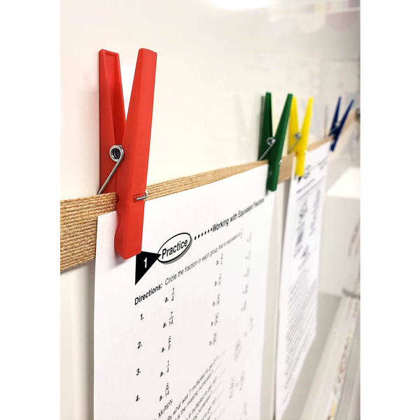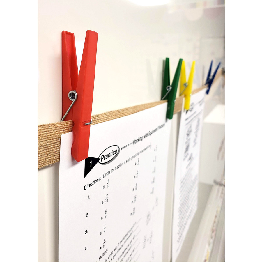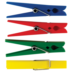 Assign student tasks or classroom job. Hang student artwork or classroom decorations. Write-on with a permanent marker and wipe-off with rubbing alcohol. 40 plastic clothespins: 10 each of red, blue, green, and yellow. Approx. 2-7/8” x 3/8”.