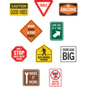 Use these Under Construction Positive Sayings Accents to dress up classroom walls and doors, label bins and desks, or accent bulletin boards. Pieces are about 6". 30 pieces per pack.