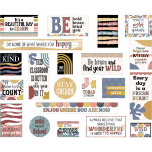 This motivating mini bulletin board uses modern style to keep a positive classroom vibe for your students. Largest piece measures 20⅛’’ x 2¾’’. 21 total pieces.