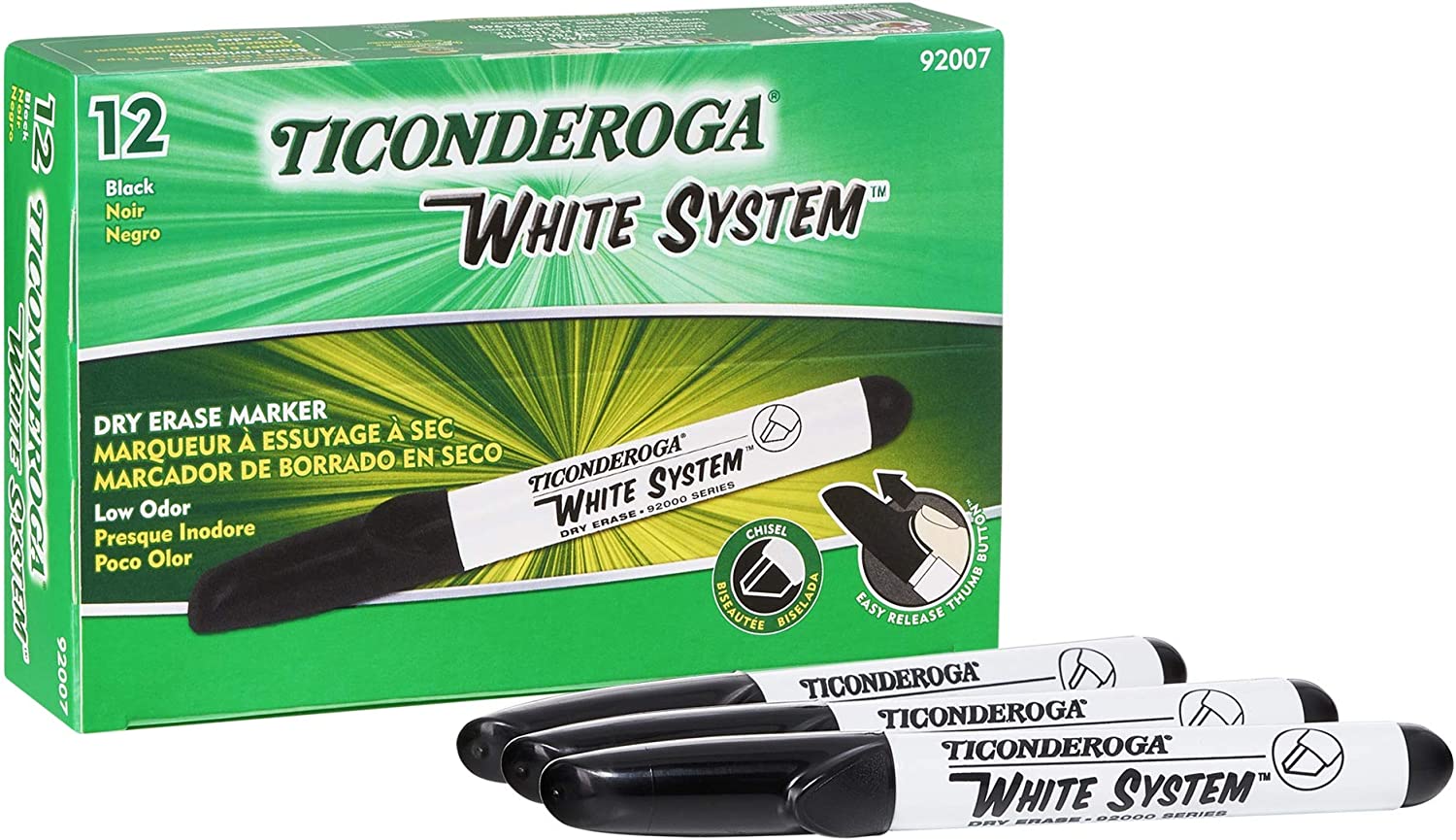 Home › Ticonderoga White System Dry Erase Marker, Black, Chisel Tip, 12-Pack (X 92007)